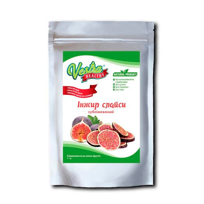Інжир Vestra Healthy сублімований – це інноваційний продукт отриманий за технологією сублімації шляхом видаленням вологи зі свіжозаморожених продуктів в умовах вакууму.